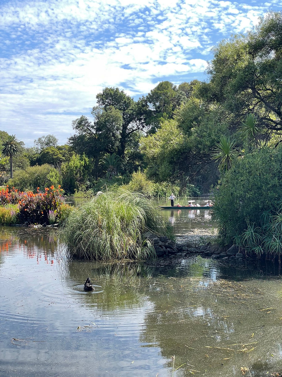 フィッツロイ・ガーデンズの池では、小さなボートがゆっくりと進んでいました。